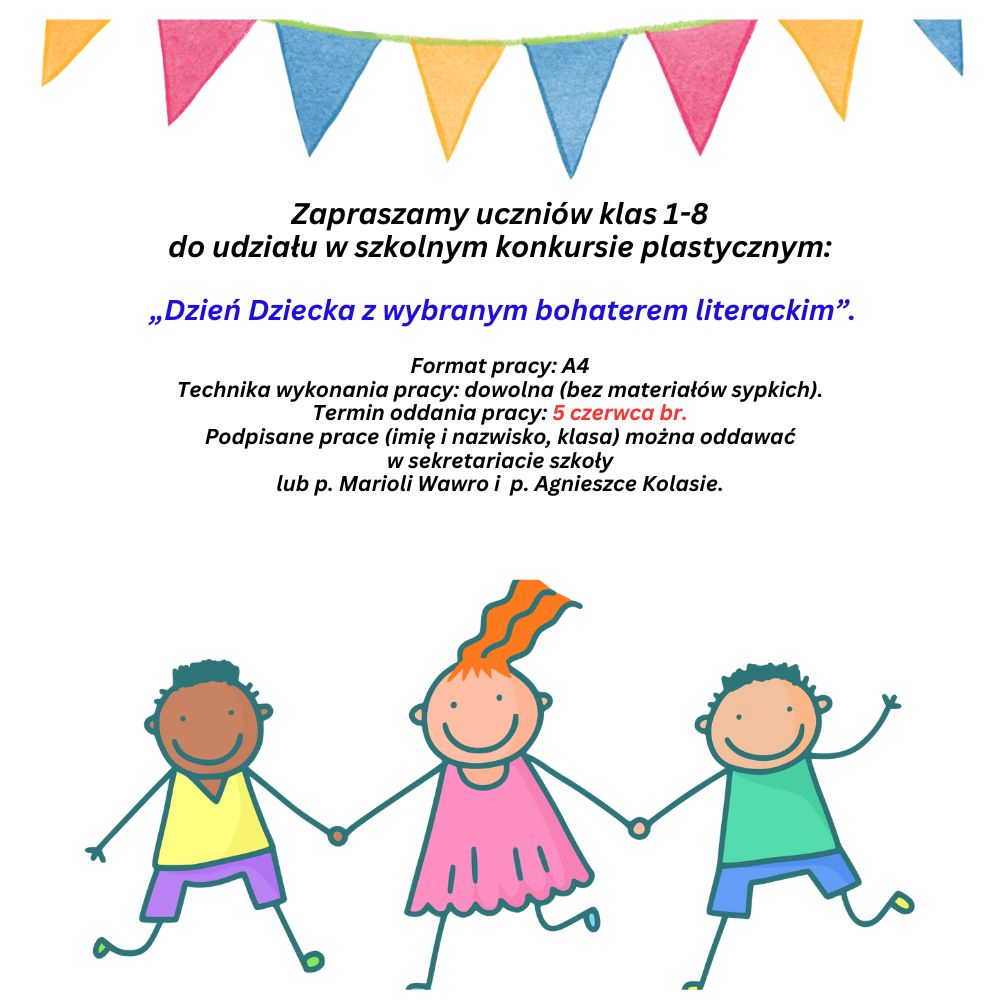 Zapraszamy do udziału w szkolnym konkursie plastycznym z okazji Dnia Dziecka