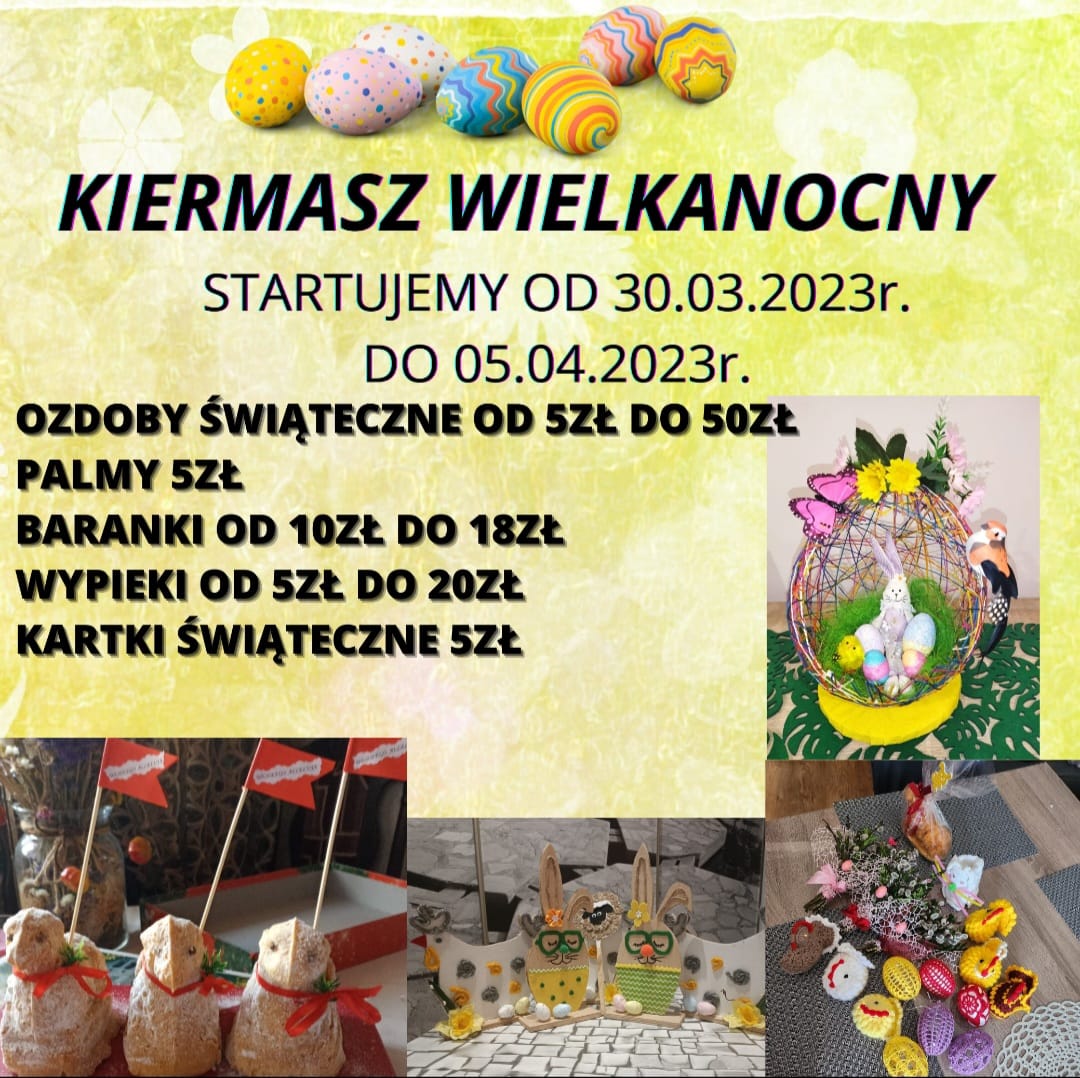 Rada Rodziców zaprasza na Kiermasz Wielkanocny w następujące dni: 30 marca od 10.00 do 18.00 31 marca oraz od 3 do 5 kwietnia w godzinach 10.00 – 15.00.