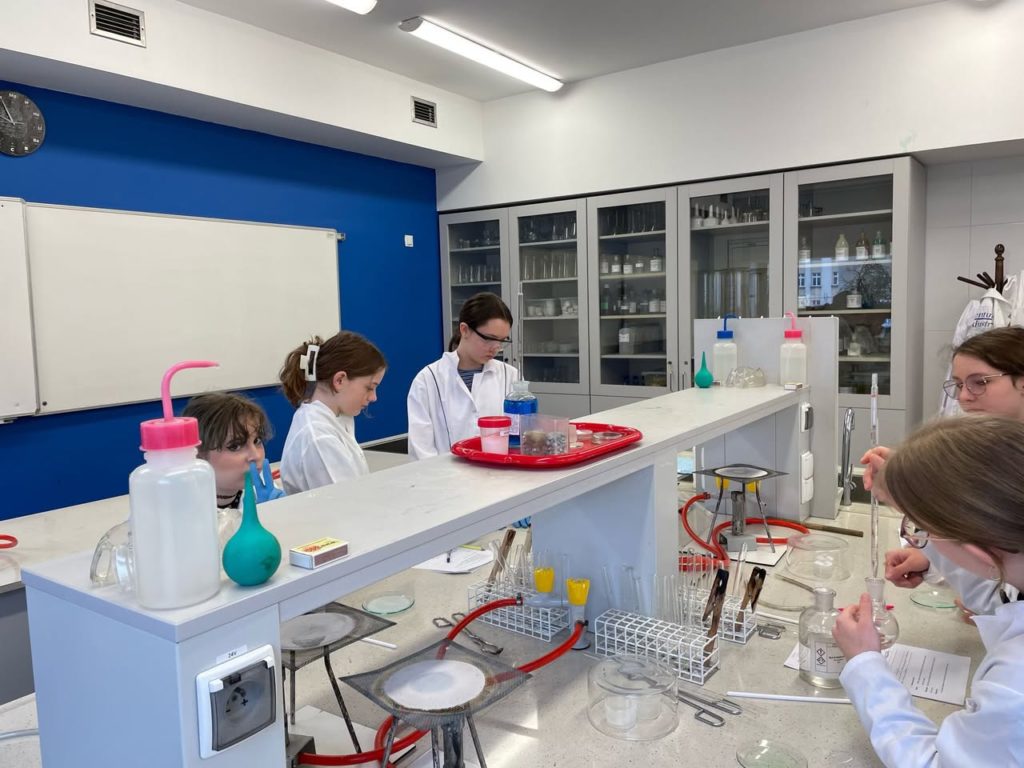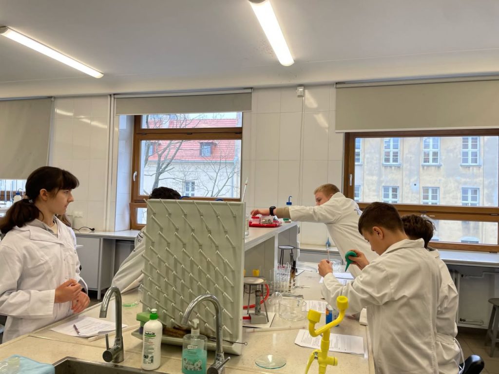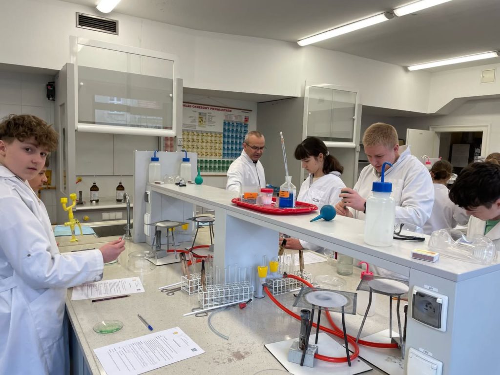 4 marca uczniowie klasy 7a wzięli udział w zajęciach laboratoryjnych zorganizowanych w Pałacu Młodzieży w Katowicach. Młodzież miała okazję uzupełnić wiadomości teoretyczne z lekcji oraz samodzielnie przeprowadzić doświadczenia chemiczne. Uczestnicy warsztatów pełni pozytywnych wrażeń wrócili do szkoły.