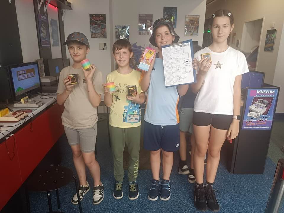 5 czerwca z okazji Dnia Dziecka klasa 4a wybrała się do Muzeum Elektroniki w Chorzowie. Czekała tam na nich prawdziwa podróż do świata dawnych gier wideo! Wycieczkę rozpoczęli od spaceru i krótkiego odpoczynku w parku. Potem – kierunek muzeum! Tam wzięli udział w fascynujących warsztatach „Historia gier wideo”, podczas których poznali początki elektronicznej rozrywki, zobaczyli legendarne konsole jak Nintendo, Sega, Atari. Po części teoretycznej przyszedł czas na to, co dzieci lubią najbardziej – granie! Aż 40 retro stanowisk czekało na naszych uczniów. Emocji dostarczył również mini turniej na najstarszej grze w muzeum – najlepsi gracze zostali nagrodzeni, a jedną z nagród była… przenośna konsola Tetris! Na koniec – obowiązkowe lody w drodze powrotnej.To był niezapomniany dzień pełen radości, nauki i zabawy!
