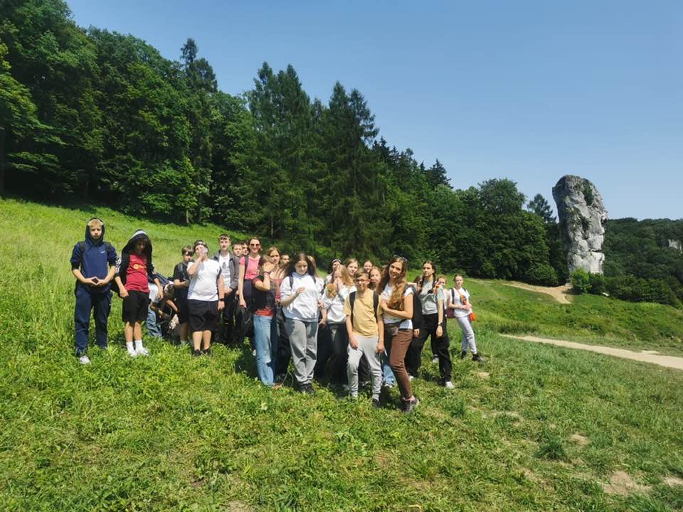 Uczniowie mieli okazję: zwiedzić tajemniczą Jaskinię Nietoperzową, spacerować po dziedzińcach Zamku w Pieskowej Skale, podziwiać majestatyczną Maczugę Herkulesa, zobaczyć słynną Bramę Krakowską i malowniczą Skałę Dorotki oraz podejść do urokliwego Źródełka Miłości, które – jak głosi legenda – spełnia marzenia zakochanych. To był dzień pełen wspólnych przeżyć i pięknych widoków, które na długo zostaną w naszej pamięci.