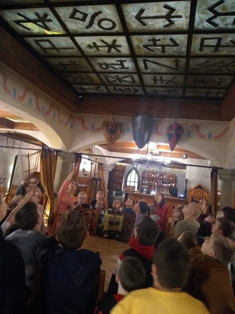13 czerwca 2022r. klasy VI i Va pojechały na wycieczkę do Kompleksu Zamkowego w Starych Tarnowicach. W pięknych wnętrzach uczestniczyliśmy w warsztatach ” Mały skryba”. Pisaliśmy gęsimi piórami i ozdabialiśmy litery. Później atrakcji było co niemiara. Odwiedziliśmy szkołę magii. Nikogo nie zaczarowaliśmy, ale nauczyczyliśmy się robić ciekawe sztuczki, wykonaliśmy własne różdżki oraz zgodnie z starą recepturą ugotowaliśmy eliksir młodości