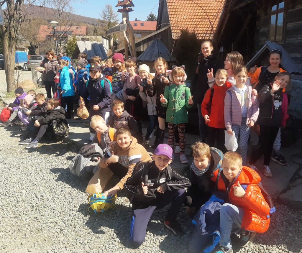 12.04. uczniowie z klas 3a i 3b byli na wycieczce w Górkach Małych i w Wiśle. Dzieci odwiedziły Chlebową Chatę, gdzie poznały dawne maszyny rolnicze, nauczyli się wiele o pszczołach i własnoręcznie zrobili masło, śmietanę i chleb. Kolejnym punktem wycieczki było Muzeum A. Małysza, w którym uczniowie mogli podziwiać trofea oraz rzeczy z prywatnej kolekcji sportowca.