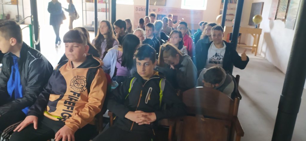 W piątek 27 maja 2022r. obie klasy ósme wybrały się na wycieczkę do Muzeum PRL-u. Wszyscy z uwagą oglądali muzealne ekspozycje i przenieśli się w czasy minionej epoki. Uczniowie chętnie słuchali Pani przewodnik, która opowiedziała wiele ciekawostek o tamtych czasach. Dużo się dowiedzieli. A po zwiedzaniu przyszedł czas na ognisko, przy którym był czas na pieczenie kiełbasek, rozmowy z kolegami i koleżankami i śpiewanie piosenek. Wszyscy zadowoleni wrócili do domu. Szkoda, że to już ostatnia wycieczka szkolna.