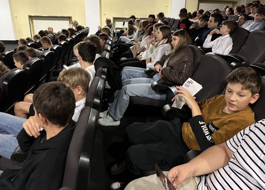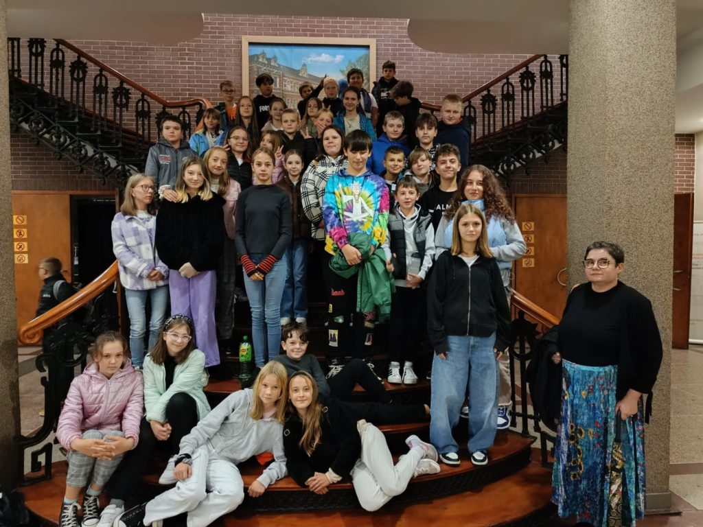 19 marca 2024r. uczniowie klas 8, 7a i b wybrali się na przedstawienie Teatru Edukacji im.Adama Mickiewicza we Wrocławiu do Domu Kultury w Rudzie Śląskiej – Bielszowicach na przedstawienie pt.” Projekt Mickiewicz”. Uczniowie przypomnieli sobie fragmenty utworów naszego wieszcza narodowego. Akcja przedstawienia rozgrywała się w muzeum Mickiewicza. Po spektaklu uczniowie mieli możliwość spotkania się z aktorami. Było ciekawie i czasem śmiesznie.