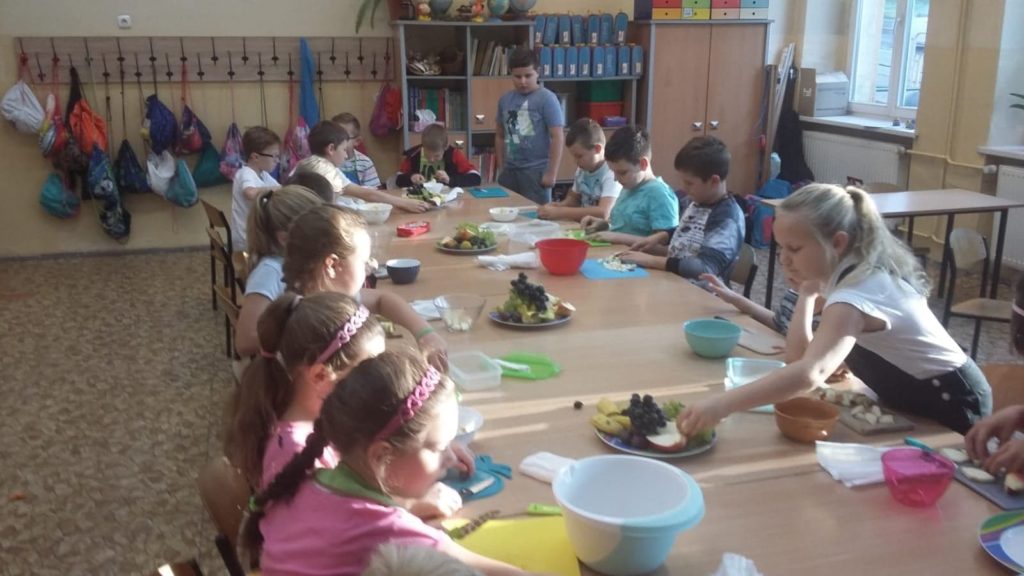 z jesiennym stołem przygotowali sałatki owocowe. Najprzyjemniejsza była degustacja przygotowanych samodzielnie i według własnego pomysłu owocowych pyszności.